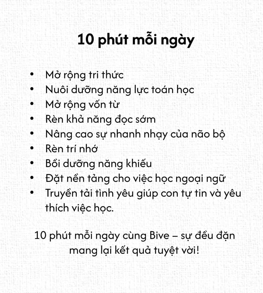 ⏰ 10 phút mỗi ngày bé có thể học được gì cùng Bive?