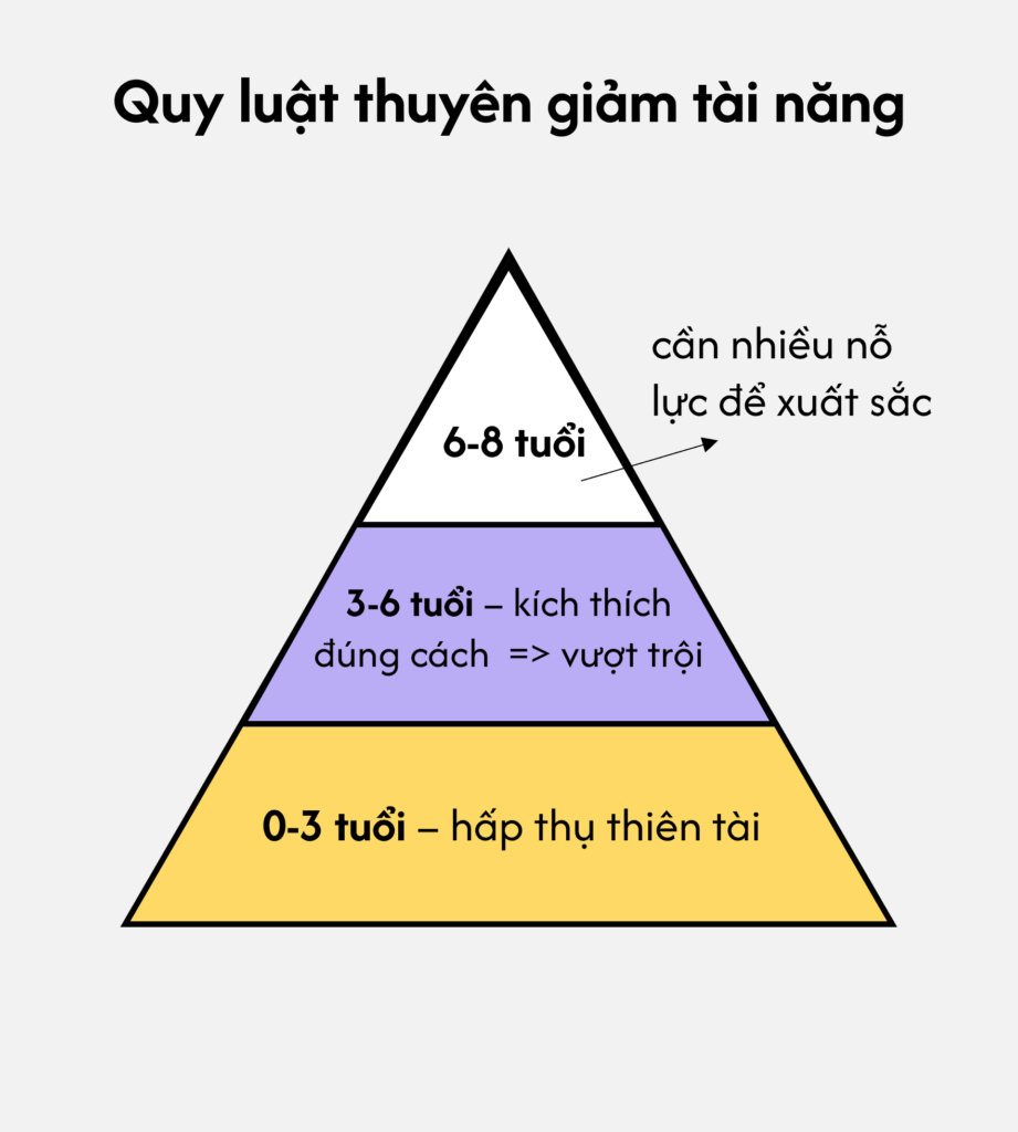 Sau khoảng 6 tuổi, nếu việc giáo dục chỉ tập trung vào phương pháp truyền thống như phân tích, bài tập lô gic, thì khả năng tiếp thu đặc biệt của não phải dần dần mai một.
