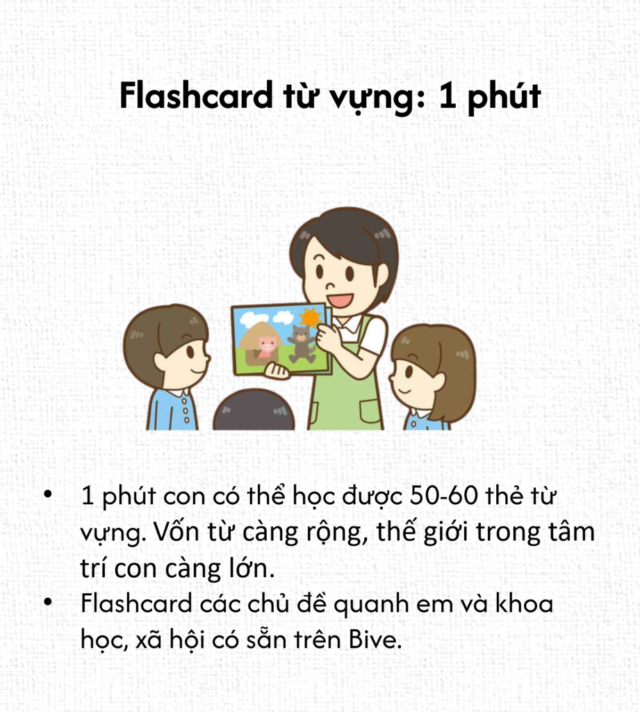 → Bé không cần hiểu ngay, nhưng não sẽ ghi lại như chụp ảnh