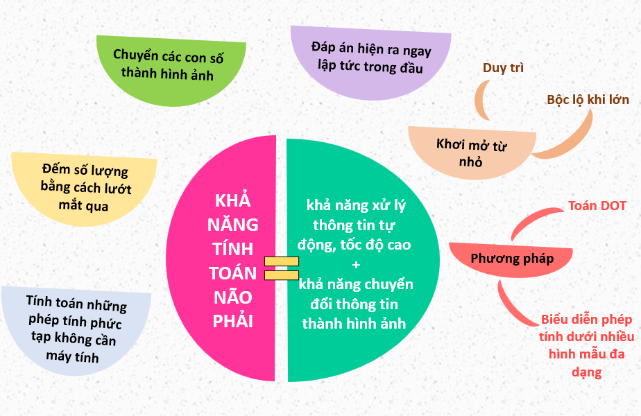 Não phải sở hữu một năng lực đặc biệt khiến nhiều người ngạc nhiên: khả năng tính toán với tốc độ rất cao. Điều này xảy ra bởi não phải có thể xử lý thông tin một cách tự động, gần như “không cần suy nghĩ”, đồng thời chuyển đổi dữ liệu thành hình ảnh trực quan trong tâm trí. Nhờ vậy, trẻ có thể thực hiện những phép tính phức tạp mà không cần đến máy tính.