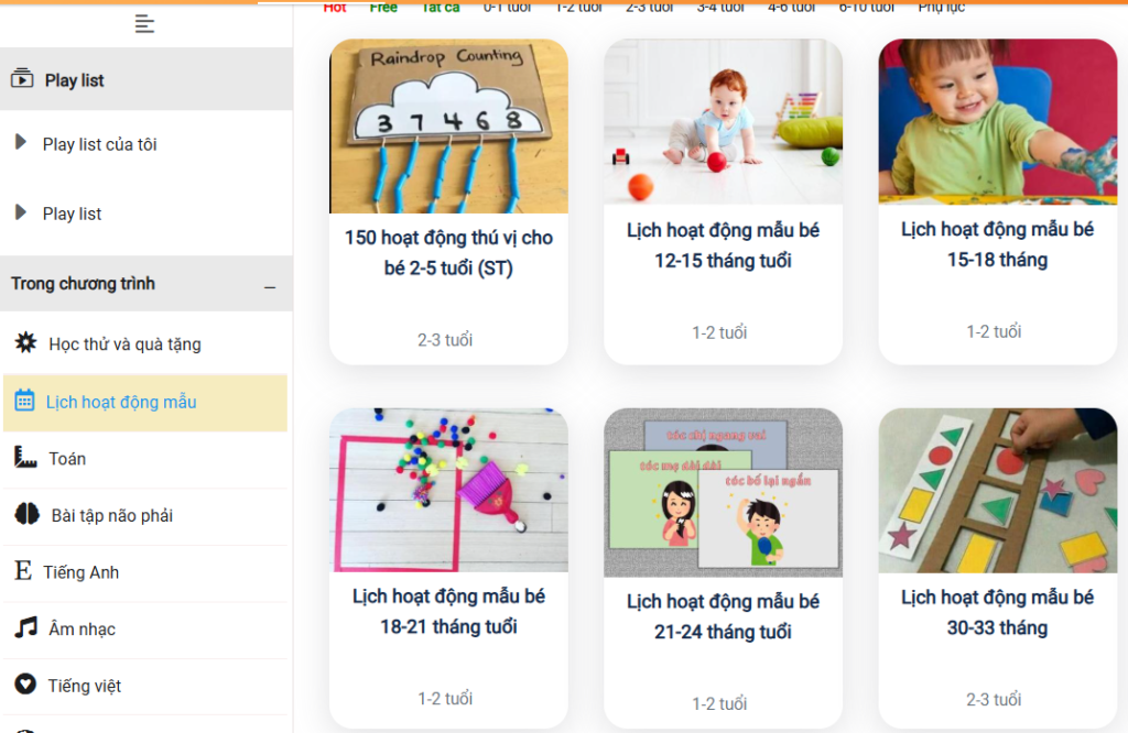 📅 Lịch hoạt động mẫu: hướng dẫn các hoạt động chơi giúp mẹ luôn sẵn sàng ý tưởng để tương tác cùng bé hằng ngày