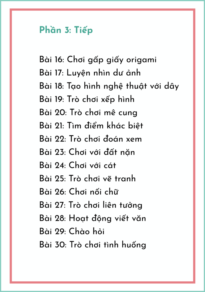 Khuyến nghị: hãy ghi lại những hoạt động quan trọng và dán tại góc học tập của bé để thực hành mỗi ngày.
