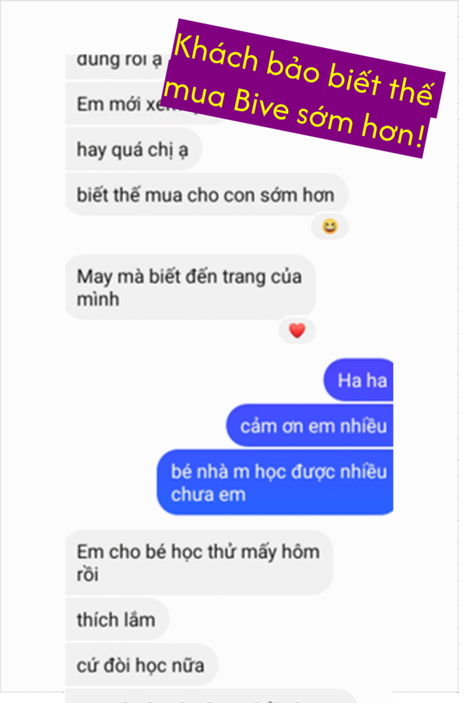 Tham khảo các chương trình kích hoạt não phải và hệ thống học liệu phong phú trên website giáo dục sớm bive.edu.vn , nơi ba mẹ tìm thấy các công cụ, chương trình, tài liệu chất lượng để giúp trẻ phát huy tối đa tiềm năng: